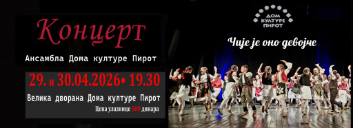 Новогодишњи концерт хора Дома културе • Среда, 17.12.2025. • Дворана Дома културе Пирот • 19.00 сати.