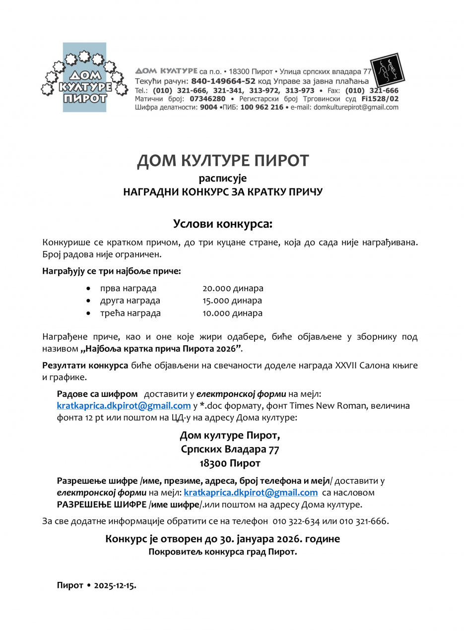 НАГРАДНИ КОНКУРС ЗА КРАТКУ ПРИЧУ