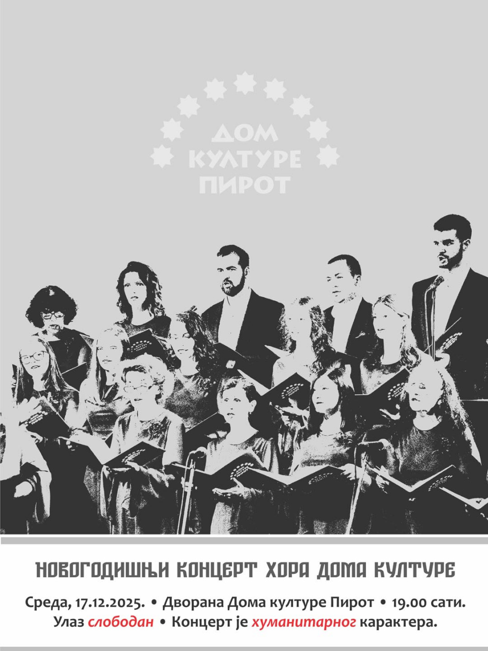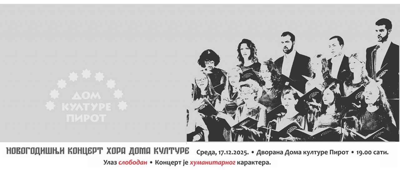 Новогодишњи концерт хора Дома културе • Среда, 17.12.2025. • Дворана Дома културе Пирот • 19.00 сати.