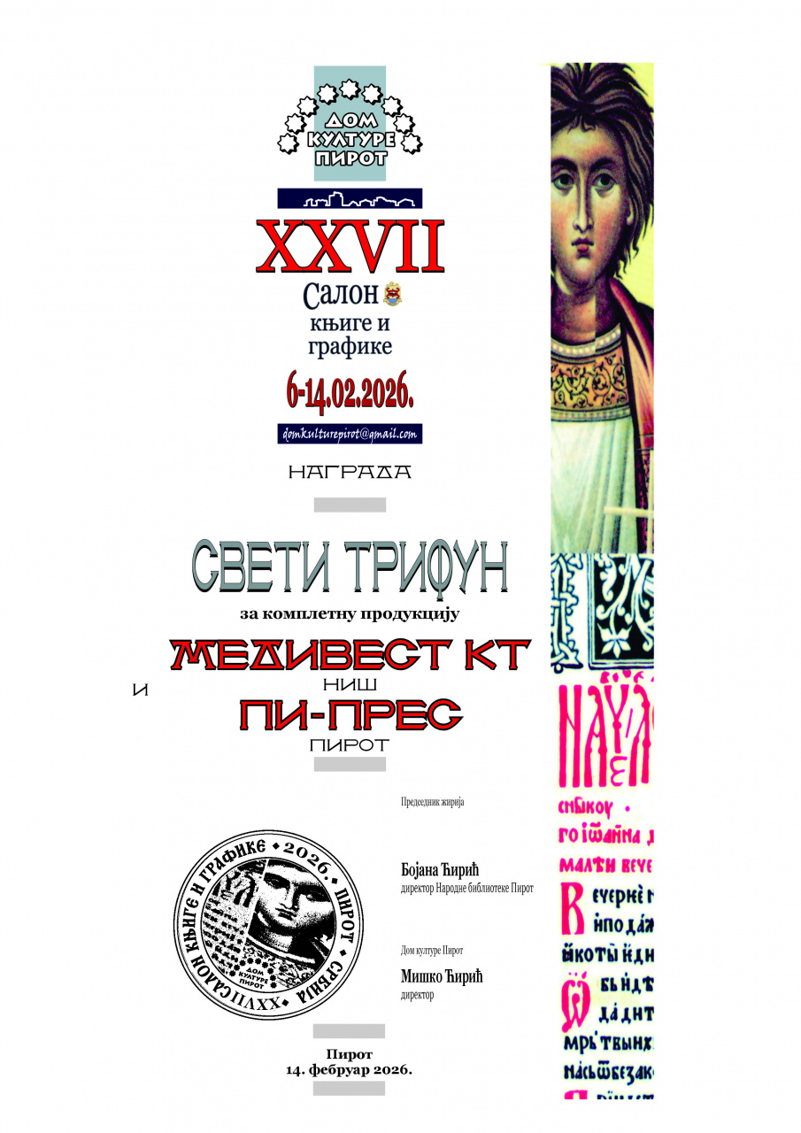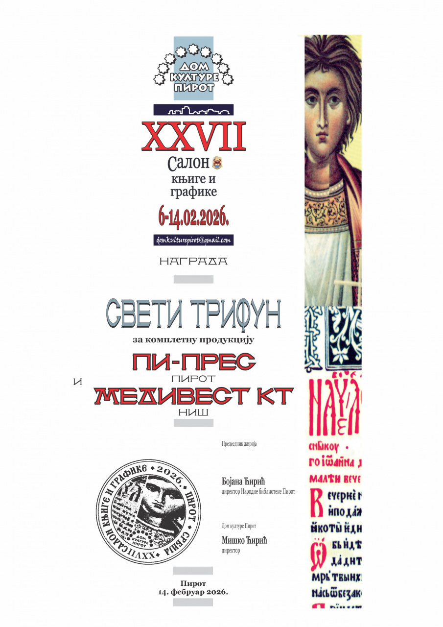 Салон књиге и графике • Пирот •2026. • Сајамска признања
